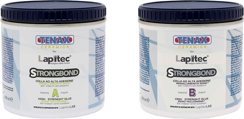 STRONGBOND je dvousložkové lepidlo nové generace na lepení materiálu Lapitec a keramiky obecně, které absolutně nežloutne vlivem slunečního záření. Jde o transparentní, polotuhou pastu, bez rozpouštědel, se střední dobou tvrdnutí. Lepidlo má vysokou tvrdost a lze s ním pracovat i při 0°C. I při vysoké vlhkosti a nízké teplotě si lepidlo drží vysokou míru transparentnosti. Lepidlo STRONGBOND doporučujeme například pro lepení bílých materiálu nebo pro „neviditelné“ spoje. Lepidlo lze leštit a dobarvovat univerzálními barvícími pastami Tenax.