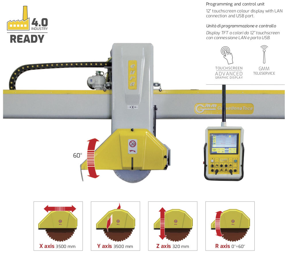 Tradiční kotoučová pila pro malé i velké kamenické provozy. Jednoduchá na použití i údržbu, kompaktní a přesná. Jde o ideální stroj na formátování. Může pracovat jak manuálně - řízená pracovníkem, tak v automatickém režimu MULTICAT k provádění rovnoběžných řezů nastavených rozměrů.