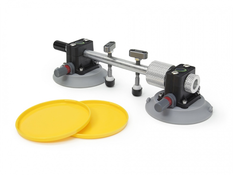 NANO STEALTH SEAMER MANUAL - všestranný pomocník pro lepení spojů kamenných desek. Nový model NANO STEALTH SEAMER pomáhá spojit a vyrovnat desky tak, aby jste dosáhli vysoké kvality lepených spojů, než pomocí tradičních postupů. Nezávislé přísavky s technologií FTS (flexible Triple Seal) pevně přilnou i k hrubým a broušeným povrchům. Jednoduchý design výrobku umožňuje snadnou aplikaci lepidla a snadné sejmutí přípravku. Přísavky o pouhém průměru 13 cm umožňují práci i na menších kusech. Rýhovaný váleček s hladkým chodem pomáhá jemně doladit lepený spoj bez jeho poškrábání. Na první pohled čitelné indikátory stavu podtlaku přísavek usnadňují kontrolu podtlaku a přísavky lze kdykoliv opětovně natlakovat. To je velká výhoda oproti přísavkám se šroubovými knoflíky nebo páčkami. Přípravek se prodává samostatně a nedoporučuje se na porézní materiály.