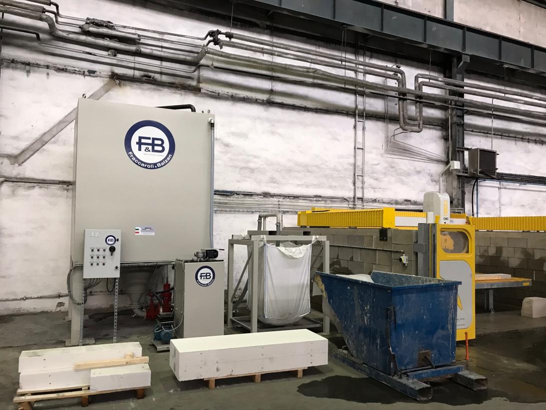 Čistička FB 2000 V-WDC XELLA SLOVENSKO Zařízení na odkalení vody, bez kalolisu, zhuštěný kal se vypouští do filtračního bagu. Odkalená vody přepadává do zásobníku čisté vody, který vyplňuje prostor kolem deknatační nádoby. Datum realizace 10.2019